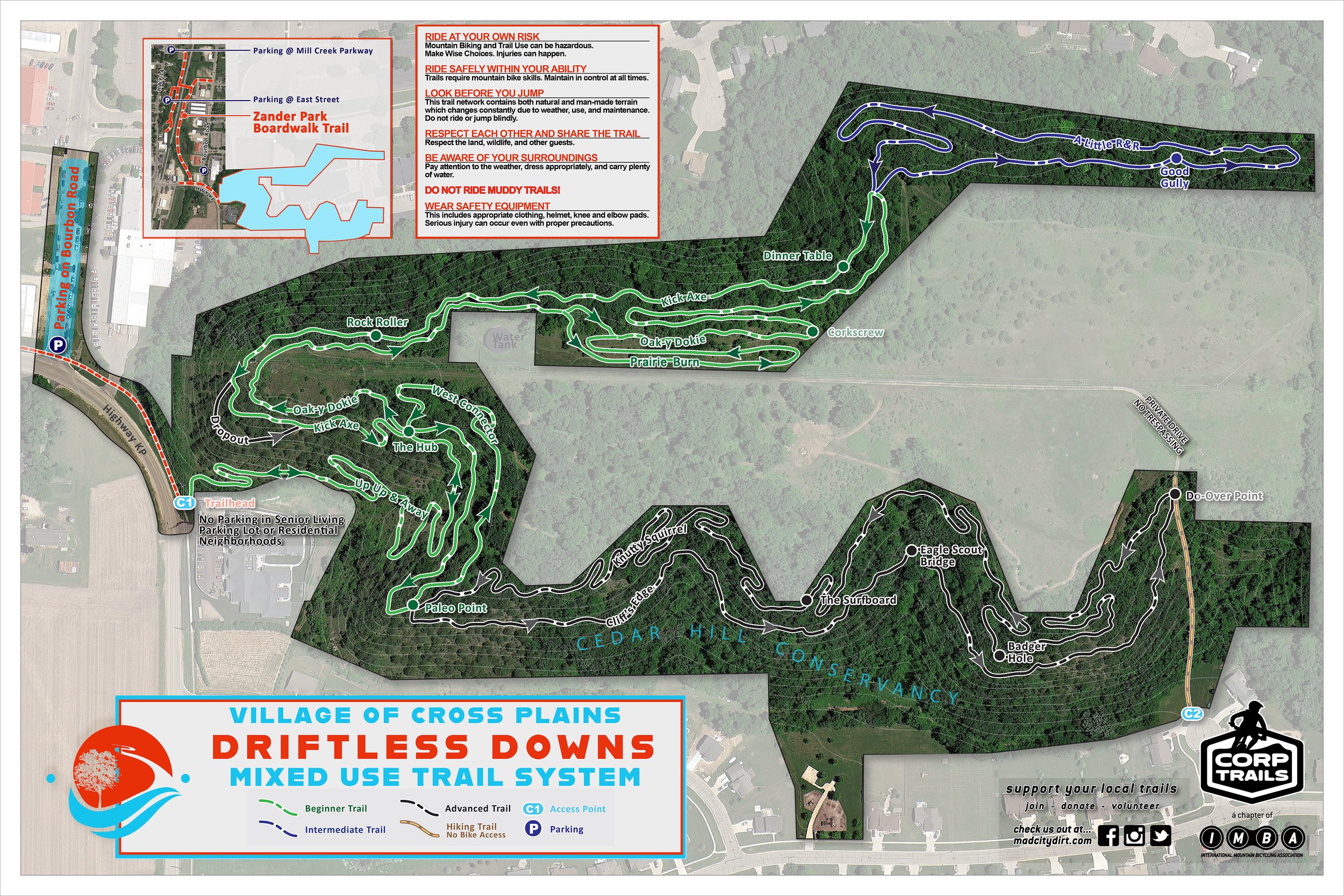 If you like what you see and would like to see more trails like this in the area, please consider joining or donating to the CORP Trails corptrails.org, local chapter of the International Mountain Bicycle Association. Also, like our facebook page at Cross Plains MTB.